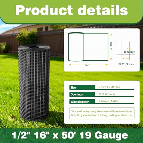 Multipurpose Use: This galvanized chicken wire mesh is easy to cut and shape to suit your needs. It provides effective protection for gardens, fruits, vegetables, flowers, and plants, keeping out rodents and other pests. The 1/2-inch mesh effectively blocks most crawling creatures, offering reliable defense for your garden.