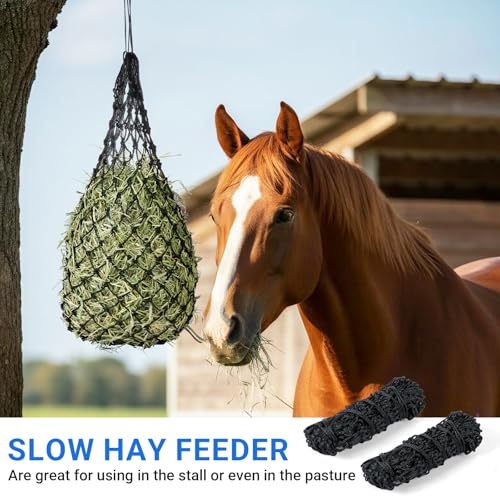 Safe & Comfortable for Your Animals The soft yet strong rope is gentle on muzzles and teeth. The slow feed design supports better digestion and helps reduce harmful stable vices like cribbing, keeping your animals happier and healthier.