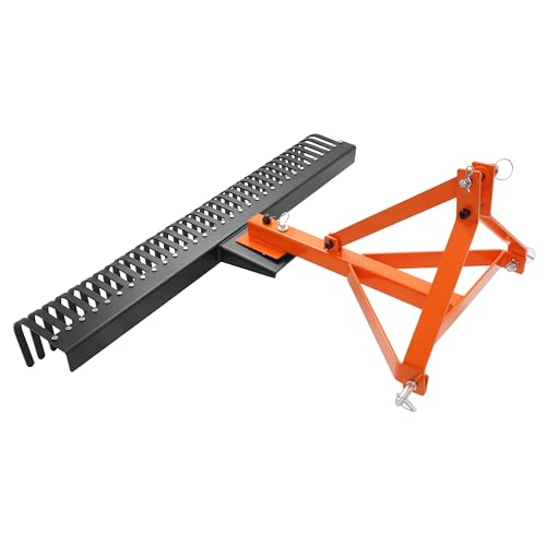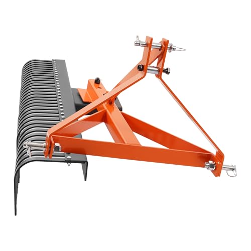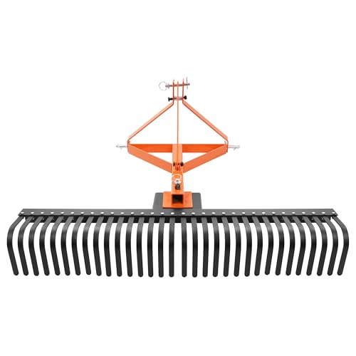 Compatibility: This 60-inch landscape rake is designed for Category 1, 3-point hitch tractors, making it compatible with a wide range of compact tractors. Ideal for industrial, construction, and agricultural applications, it excels at leveling land, clearing hay, mowing lawns, and various other tasks around the farm or property