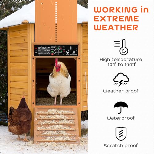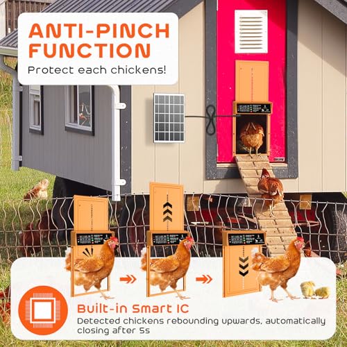 ????????????????????? ???????? ???????????????????????????? ???????????? ?????????????????????????????Upgraded your chicken game with solar automatic chicken door, the installation is simple and straightforward, ensuring the solar panel is placed where it can receive more sunlight. it's genuinely convenient to use and the electric chicken coop door is solar-powered, so no need for complicated wiring or cabling. Stress-free chicken care even on vacation! Hassle-free setup and major time-saver make it an essential accessory for any poultry owner.