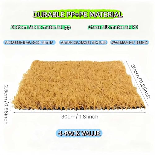 VERSATILE USE: Ideal for chickens, ducks, quail, and other poultry as grass carpet indoor solution. Can also be used as artificial grass for other applications. 4-pack provides excellent value for multiple nest boxes in any weatherproof chicken coop setup.