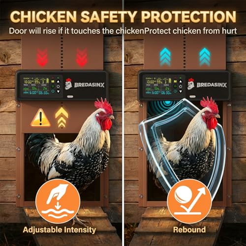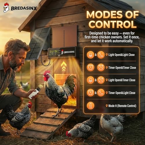 2. Automatic Open & Close with Timer & Light Sensor This chicken coop door features a built-in timer mode and light sensor mode, allowing the door to open and close automatically based on your preset schedule or natural daylight conditions. Designed for convenience and reliability, it ensures your flock stays on routine even when you're away