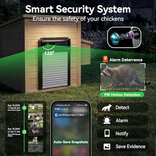 Predator alerts that actually help protect your flock – When predators approach at night, the chicken door triggers an alarm to help scare them off, takes photos, and sends instant app notifications. It’s a big relief for backyard keepers who can’t stand watch all night.