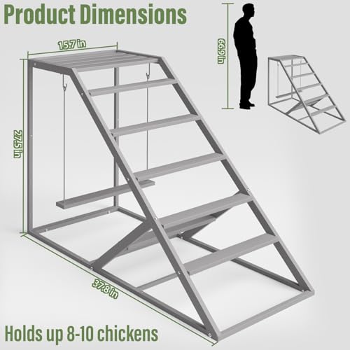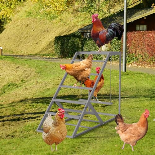 ?Spacious Design?The chicken perch with swing and ladder, along with the entire structure, provides a spacious and robust area capable of holding 8 to 10 chickens. Serving as an important platform within the chicken activity center, its solid construction not only supports the birds but also enriches their entertainment life, making it a vital component of their habitat.