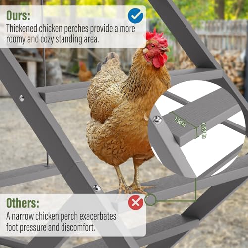 ?Beneficial for Chicken Health? The smooth wooden surface finish gently cares for their feet while enhancing the strength of their legs and feet through exercise. This portable poultry accessory promotes chicken activity, thereby bolstering their overall health by improving coordination and balance and providing necessary leg and foot workouts.