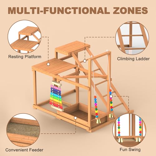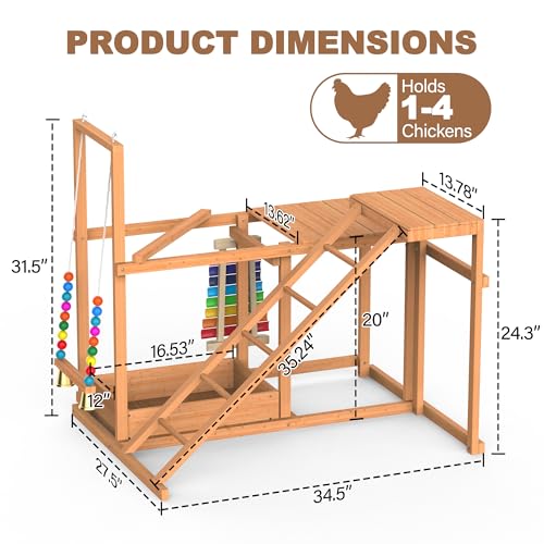 Multi-Functional Chicken Perch: It features a ladder, feeder, and a fun swing to meet your chickens' needs for jumping, exercise, and feeding. Every surface is meticulously polished, and the rounded edges of the ladder are specially designed to protect your chickens' feet from scratches and injuries