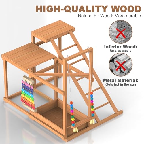 Sturdy & Durable Chicken Perch: Crafted from premium natural fir wood, this chicken perch is built to be solid. It withstands outdoor elements like sun, rain, and snow, resisting corrosion and warping for long-lasting use