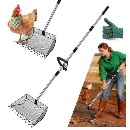 Lightweight Sturdy, and Easy to UseāThis 2-in-1 metal chicken manure shovel is made of 304 stainless steel and features an adjustable rubber handle, this makes the shovel lightweight and easy to handle, while the stainless steel handle enhances its strength, making it suitable for everyday outdoor use. It's a practical chicken manure shovel that's both lightweight and effortless to use, and the included gloves provide good protection for your hands