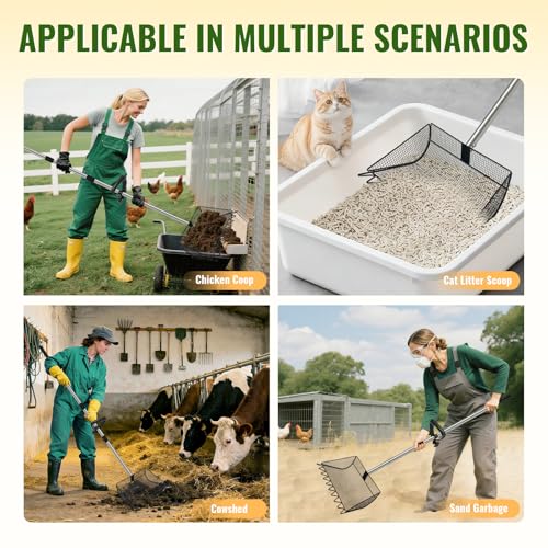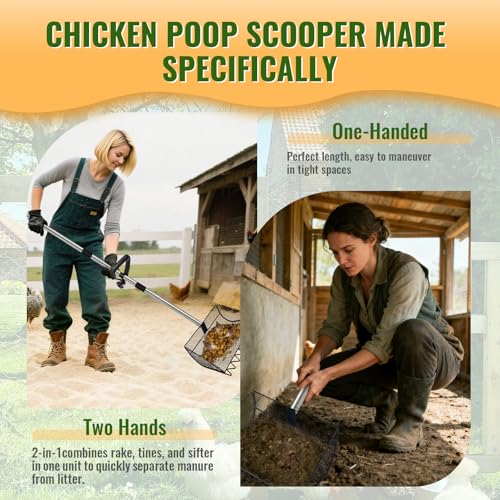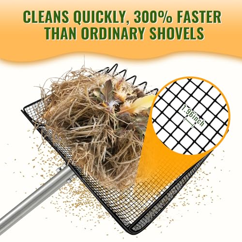 Adjustable Up to 65 Inches - The stainless steel handle adjusts to 3 positions, so you can choose the length that feels right for your height and coop layout. Whether you use it as a coop scoop, chicken coop scoop, or chicken coop rake, it helps you clean standing up instead of constantly bending over