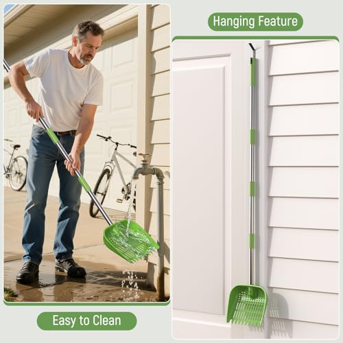 WIDE HEAD FOR FASTER CLEANUP - The 10.5 x 12 inch scoop face covers more area with each pass, so you can clean more in less time. It is quick to assemble, easy to rinse clean with a hose, and simple to hang up between uses.