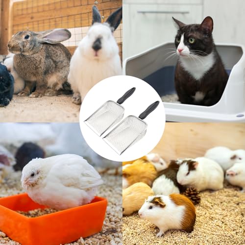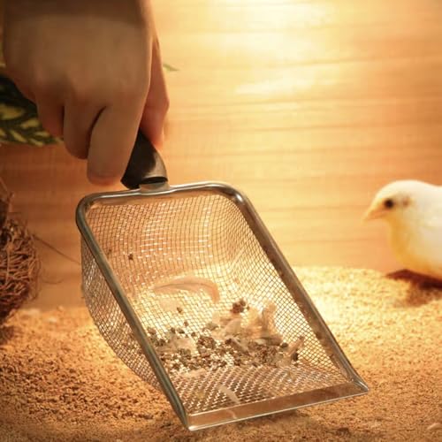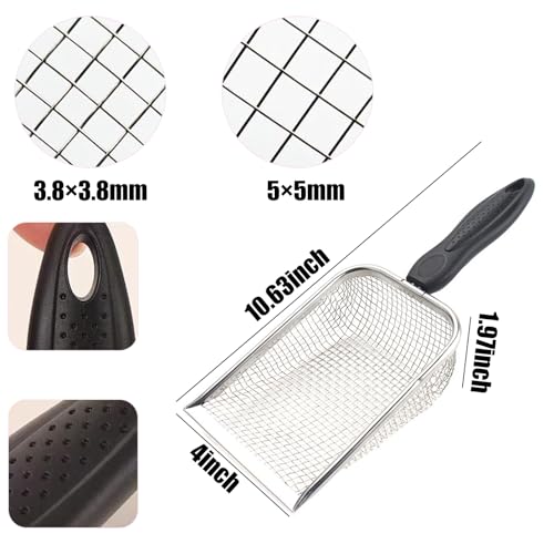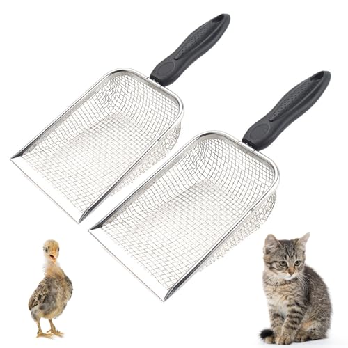 Dual Mesh Sizes for Versatile Cleaning: This 2-pack chicken poop scooper includes 0.15inch and 0.2inch mesh sizes,perfect for scooping poop, separating fine sand, and cleaning coop litter with ease