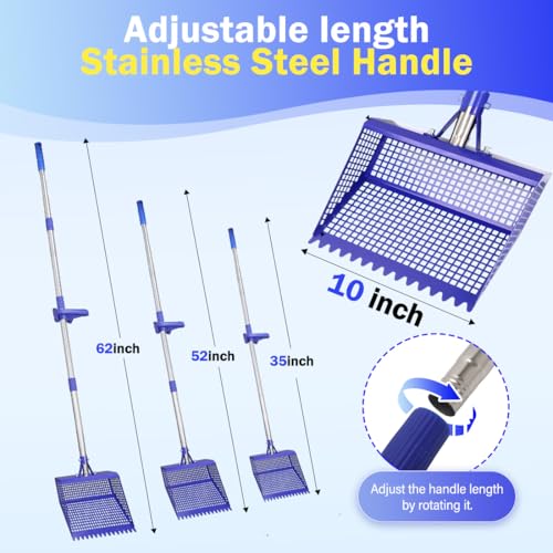 ?Adjustable 3-Speed Stainless Steel Handle — Custom Fit for Every Height?? Switch between three practical lengths — 35”, 51”, and 62” — with a secure twist-lock design (no loose handles mid-use!). Perfect for all users: 35” for small coops/shelves (great for one-handed operation), 51” for average-height adults (avoids hunching), and 62” for tall users or elderly keepers (no more kneeling to reach the coop floor).