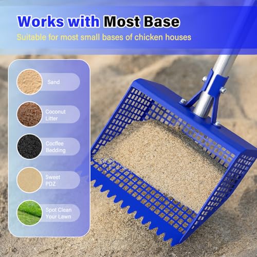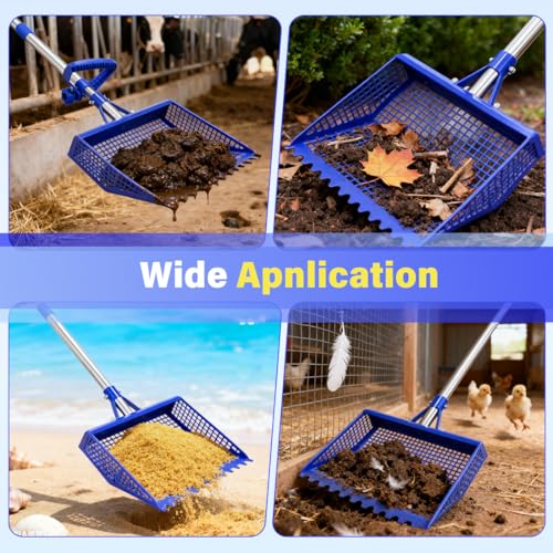 ?Multi-Scene Sifter — More Than Just a Chicken Coop Tool?? This versatile tool isn’t limited to chicken coops! Use it for: ? Cat litter boxes (0.4” holes fit tofu/bentonite sand, no broken litter leakage); ? Cattle pens (rust-proof steel stands up to urine and manure); ? Beach trips (sifts shells from sand without scratching your hands); ? Rabbit/goat hutches (gentle on small livestock bedding). One tool covers all your cleaning needs — no need to buy separate scoopers for different tasks!
