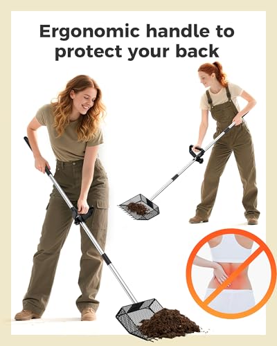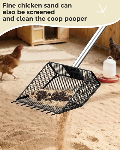 Versatile for Multiple Scenarios: This multifunctional litter sifting shovel is not just limited to chicken coops. It can be used in a variety of settings, including goat stalls and horse stables. The durable construction and stainless steel handle make it suitable for handling different types of litter and waste. Whether you have a small backyard setup or a large farm, this chicken pooper scooper for sand is up to the task