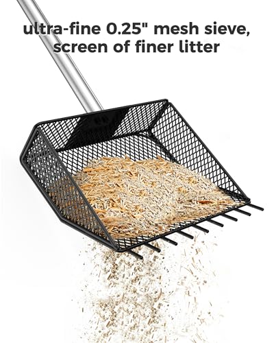 Fine Mesh Design: Unlike standard scoops with 0.75" holes, our pooper scooper sifting shovel features an ultra-fine 0.25" mesh sieve. This significantly smaller opening allows for more precise and efficient separation, capturing finer debris and waste while retaining usable bedding material