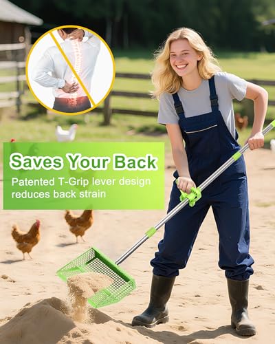 Saves Your Back?Patented T-Grip lever design reduces back strain by 70% vs standard scoops! Lift heavy manure/sand without bending – ideal for seniors, back pain sufferers, or tall coops. Your spine will thank you
