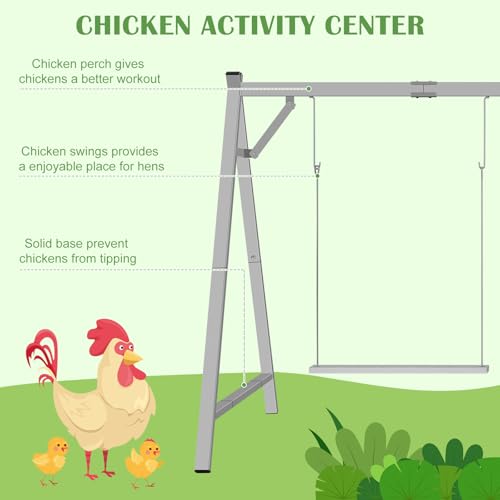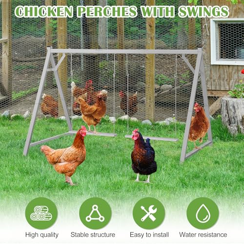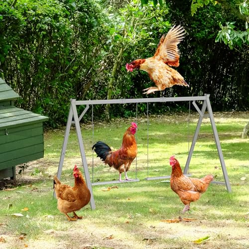 ? Dual Swing Design ? Featuring two sturdy wooden chicken swings, it provides ample activity space for poultry, not only suitable for small chicks and adult chickens, but also for poultry, hens, birds and ducks, The design enhances their coordination and balance, while exercising their legs and feet, making poultry healthier and more active.