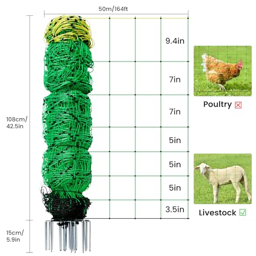 ???????????????????????????????????????? ????????????????????????????????????????????: The electric fence netting is designed to keep predators and unwanted animals at bay, creating a secure space for your sheep, goats, cows, deer, pigs, large dogs, and other livestock. Before purchasing the fence, measure the size of your livestock to ensure suitability. It may not be suitable for smaller poultry such as chickens and ducks