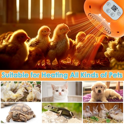 Timer and Memory Function: The chicken heating lamp features an LED digital display with a built in 2/4/6/8/10/12H timer, with timed off function, adjusting the heating cycle to ensure that the chicks are always in a comfortable environment; The memory function can automatically restore the previous temperature setting after power failure