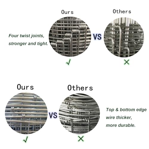Scientific Design -The bottom and upper have different opening mesh sizes.The Openings of fencing mesh get smaller toward the bottom to prevent rabbits, dogs, cats, chickens, foxes and other small animals to enter your farm,field or Garden.