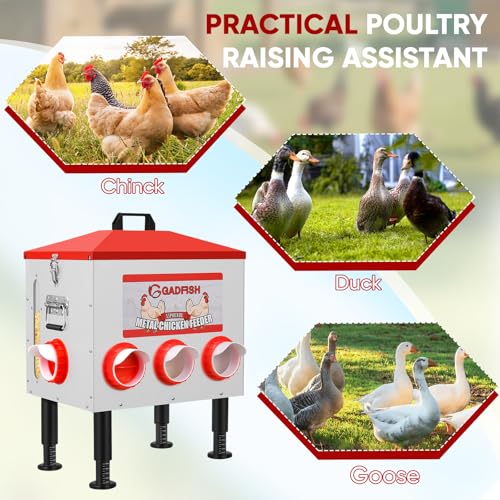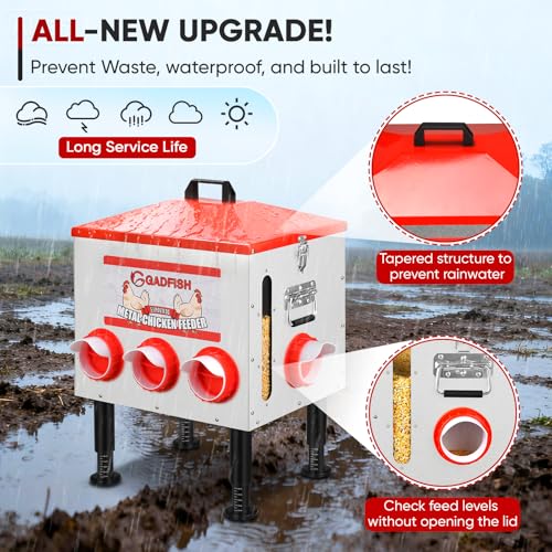 Durable and Sturdy: GADFISH automatic chicken feeder is made of high-quality metal and is long-lasting. Aluminum-coated galvanized sheet not only stand the test of harsh outdoor weather and time, but also effectively prevent animals from biting and damaging the products. What about maintenance? It is not prone to rust and is easy to clean.