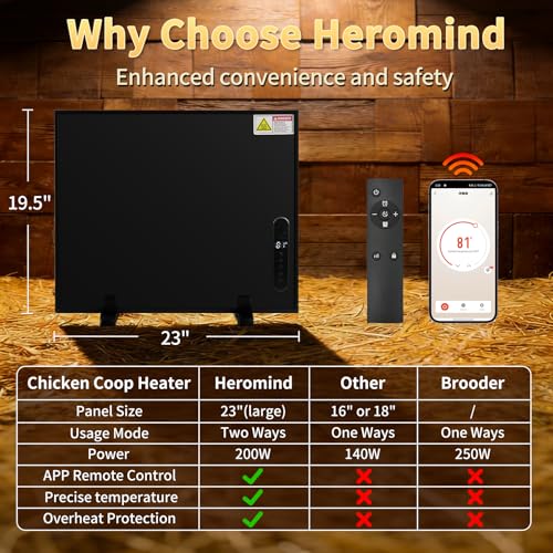 Convenient Smart Control: With the Heromind App, you can check the temperature inside the chicken coop anytime and anywhere. You can also adjust the temperature, set timers, ensuring your chickens remain at a suitable temperature even when you are miles away.