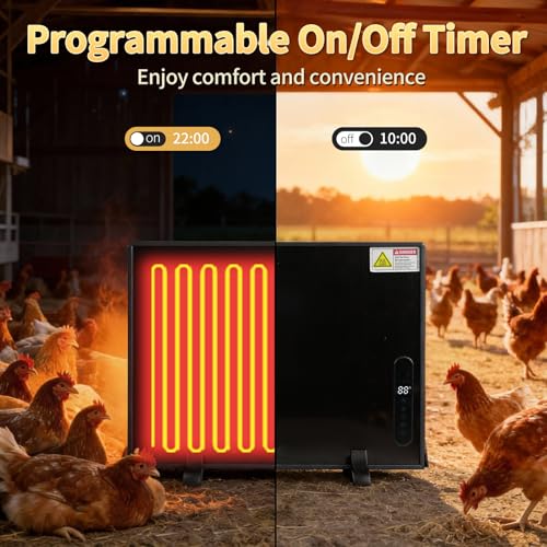 Safety First: The chicken coop heater is equipped with high-temperature shutoff protection and tilt-shutoff features, ensuring safe operation at all times. Protect your flock and property from potential fire