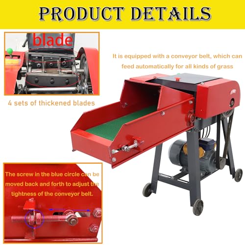 ?with Conveyor Belt?The machine is equipped with a widened and thickened feeding port, which can be installed separately,and can be removed and placed when not in use, saving space. It is equipped with a conveyor belt, which can feed automatically for all kinds of grass ,the tightness of the conveyor belt can be adjusted by moving the screw back and forth.