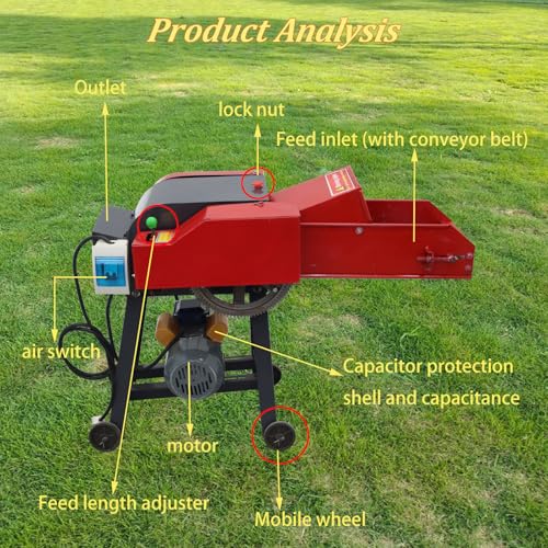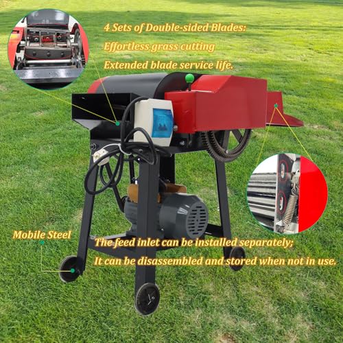 [4-blade Cutting System]: Equipped with 4 thickened double-sided blades, this system is particularly suited for shredding various types of forage, maize, wheat, peanuts, legumes and straw. An essential piece of machinery for farmers, small to medium-sized feed mills and farms, it delivers clean, efficient cutting with a long service life.