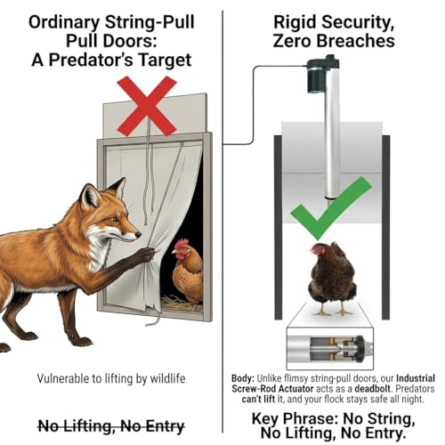 Rigid Mechanical Security: Unlike flimsy string-pull doors that can be lifted by predators, our solid aluminum door and heavy-duty screw-rod actuator create a deadbolt lock that stays shut all night.