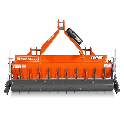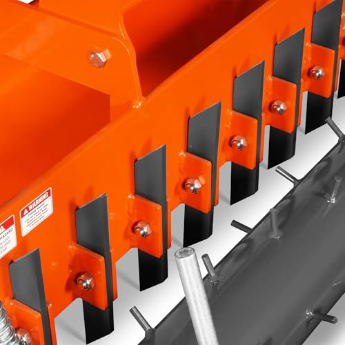 Spiked Roller for Effective Soil Pulverizing: The rear roller features 3/8 in steel spikes fully welded to a 6.6 in diameter tube, delivering strong clod-crushing performance. Spring-adjustable down pressure allows precise ground contact for consistent soil pulverizing and a smooth seedbed finish.