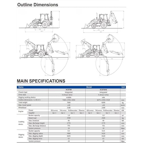 Integrated Loader & Excavator Design:This backhoe loader combines a front loader bucket and rear excavator arm in one machine, allowing digging, loading, trenching and backfilling without switching equipment. Ideal for improving efficiency on job sites with limited space.