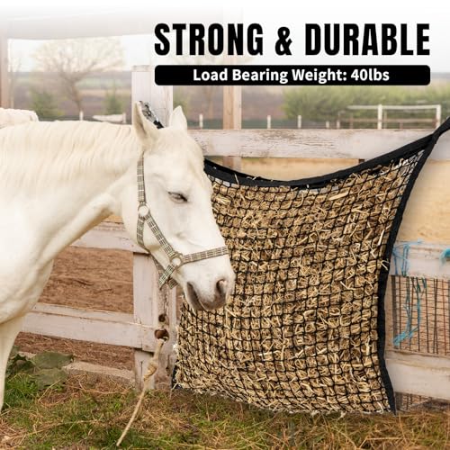 ?Weather-Resistant for Long-Lasting Use?Crafted from premium polyester rope, softer on horses’ gums yet tough enough for rain, snow, and sun, it withstands years of heavy use without fraying or sagging. This durable net maintains its shape and strength, save money on frequent replacements