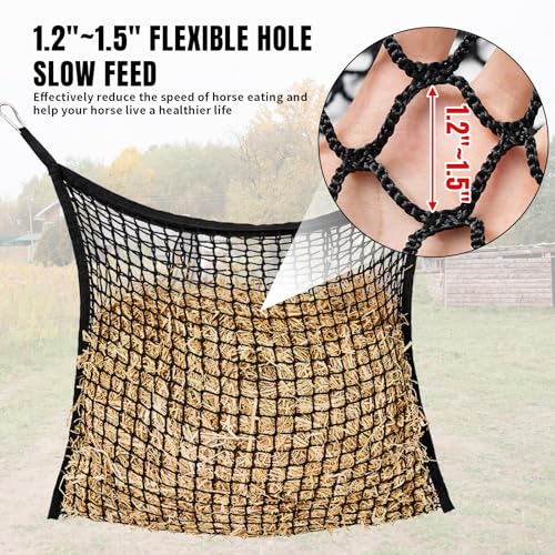 ?Slow Feed Design for Healthier Digestion?Regulate your horse’s eating habits with our precision-engineered hay net! The 1.2" mesh holes (expanding to 1.5" when filled) slow down consumption by 40%, mimicking natural grazing to reduce digestive stress and wasted hay. Perfect for horses prone to overeating, this design keeps your horse occupied longer while promoting healthier gut function