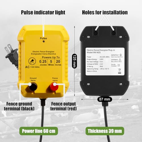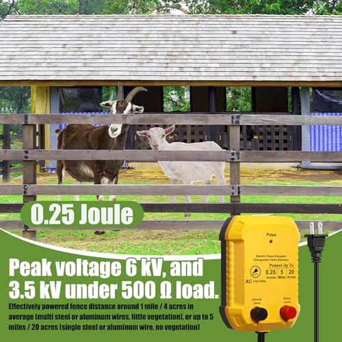 Stable Voltage Output: the electric fence output voltage: 110V AC, work distance 0.8 Miles / 0.25 joules max, this 110V AC-powered fence utilizes residential power delivering uninterrupted fence protection without reliance on sunlight or batteries