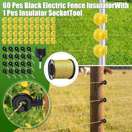 Easy to Install: designed for portable and permanent electric fencing, this kit is lightweight and easy to mount on posts, walls, or enclosures; The pulsating shock is harmless to animals, making it a safe and reliable barrier; Black electric fence ring insulators suitable for 8 gauge through 30 gauge, Yellow electric fence Insulators T Post Suitable for 1-1/4 or 1.33 Studded T Post; Please check that your T-shaped post size is suitable; Posts that are too large may cause cracking