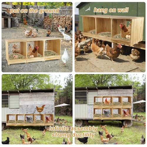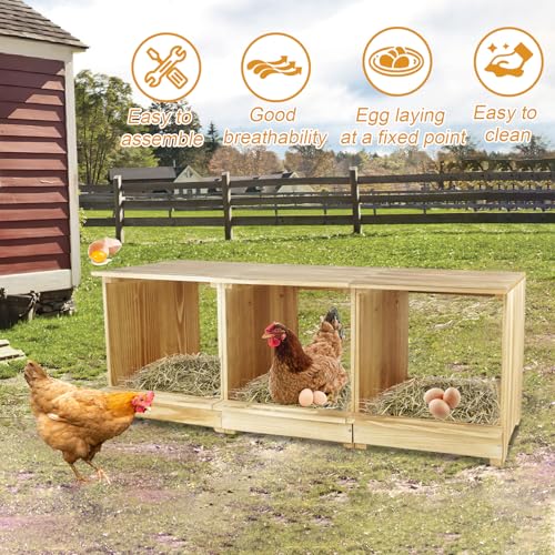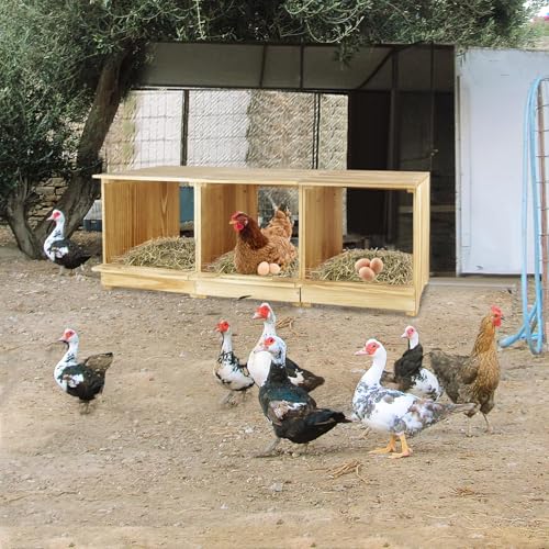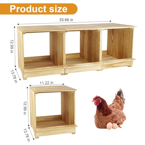 Spacious Size?Chicken Nesting Boxes 33.6x13.7x13 size of with 3 individual nesting holes measuring each, our nest boxes provide ample space for your hens to comfortably lay their eggs