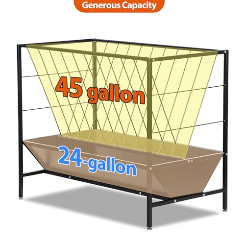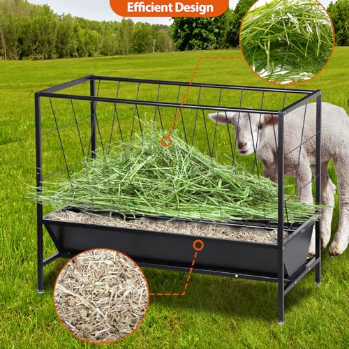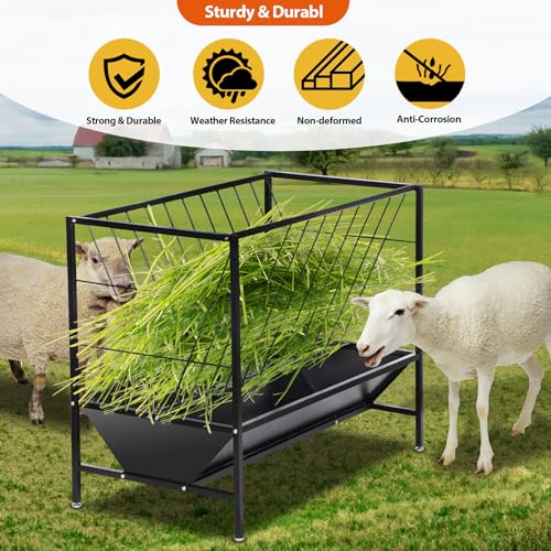 Generous Capacity: Our pasture feeder boasts a 24 gallon feed pan at the bottom, ensuring your animals have constant access to nutrition; the top grass rack provides an additional 45 gallon of space for forage, allowing your livestock to graze freely; it's large enough to accommodate the needs of your animals while remaining easy to manage