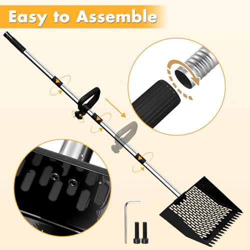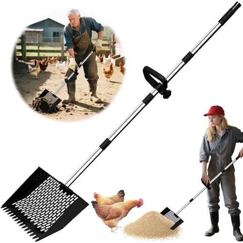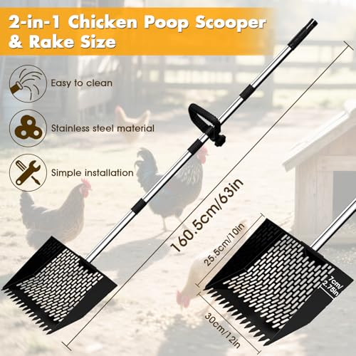 Premium Quality: Our chicken poop scooper is made of quality steel and the poles is made of aluminum; this practical 3-in-1 garden tool can be used as a rake, shovel or sieve; heavy duty, lightweight and long-lasting use