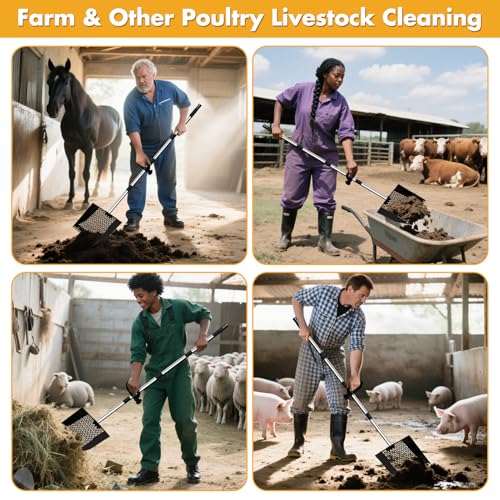 Versatile Application: Our heavy duty chicken coop rake are not only suitable for chicken coop, farm goat stall and horse stables sand poop cleaning; but can also be used cat litter scoop, dog poop scooper for yard, sand sifter shovel for the beach, metal detecting, rocks