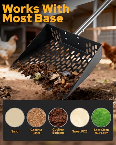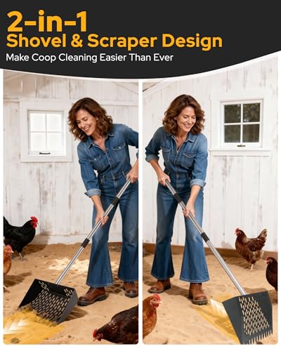 ?Versatile for Multiple Scenarios, Meets All Cleaning Needs?This chicken coop manure scoop handles most scenarios effortlessly, including chicken coops, sandy areas, straw bedding, wood shavings, and more. Beyond poultry care, it's an indispensable helper for cleaning dog kennels, rabbit hutches, garden sandboxes, and livestock pens. Whether you're a backyard chicken keeper, small-scale farmer, or pet owner, this tool effortlessly tackles diverse waste cleanup challenges.