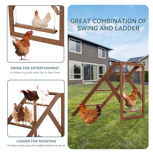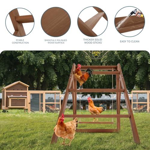 Promotes Healthy Activity:The two-tiered design and included chicken swings encourage natural movement and exercise.The smooth perches are gentle on chicken feet, promoting healthy leg and foot development and improving coordination