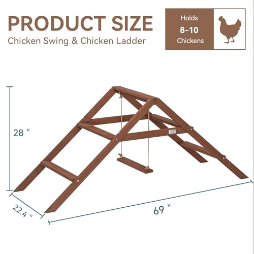 Chicken Perch Size: 69"Lx22.4W"X28H",gives the chickens a perfect space to rest and exercise in the chicken coop, a happy area for their entertainment, and also encourages healthier behavior and healthier physical health