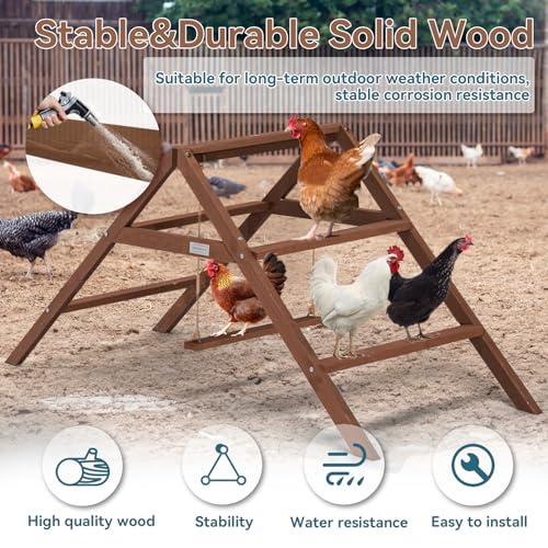 Add Interest: Designed with 3 layers from high to low, this chicken perch has a polished surface that won't hurt chickens' feet. Each layer exercises their legs and feet, while the swing promotes exercise and improves coordination and balance