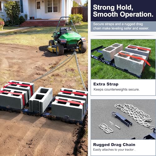 Straps for Enhanced Leveling: Includes adjustable straps to secure up to four concrete blocks onto the drag harrow, adding extra downward pressure for improved ground contact and smoother, more consistent leveling on soil, sand, or gravel.