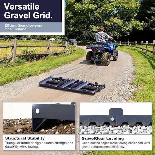 Durable Chain for Multiple Vehicles: This leveling rake equipped with a strong, easy-to-attach chain that connects seamlessly to ATVs, UTVs, tractors, or lawn mowers, making setup quick and convenient.