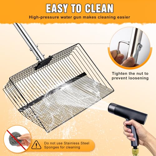 Multi-Function Sifter Shovel – Versatile and adjustable, this chicken coop scooper for sand tackles big cleaning jobs with ease. Perfect for chicken coops, it also adapts to your needs as a cat litter scooper, beach sand scoop, or even for clearing cow pens. The adjustable length ensures you have the right tool for every task, making it your go-to companion for a wide range of chores, all year round.
