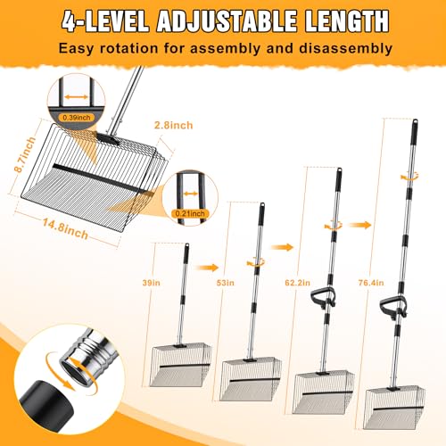 Easy to install and clean, our poop spoons are designed to be easy to install and clean. The head and handle are securely secured by locking screws to ensure stable connection. The handle is easily connected by a simple rotating thread, allowing you to switch different lengths in seconds. When cleaning, just rinse with a high pressure water gun and the garbage will be washed away easily, keeping your spoon in the best condition for next time!