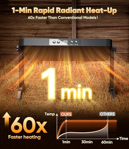 ?Smart & Radiant Coop Heater?Our chicken coop heater comes with a built-in smart thermostat that automatically adjusts the heating power based on real-time temperatures, ensuring your perfect setting is always maintained. The 200W rapid heating radiation panel with ventilation holes quickly and evenly spreads heat, quickly giving your flock the warmth and comfort they need. So whether it's a freezing night or a sudden cold snap, your chickens will stay healthy, active, and laying all winter long.