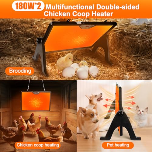 ?Dual-Sided Heating for Maximum Efficiency?: Unlike most standard brooders, our upgraded 180W dual-sided heating board heats quickly on both sides, increasing the heating surface for faster, more efficient warmth. This ensures your chickens stay cozy and comfortable with energy-saving, eco-friendly heat.
